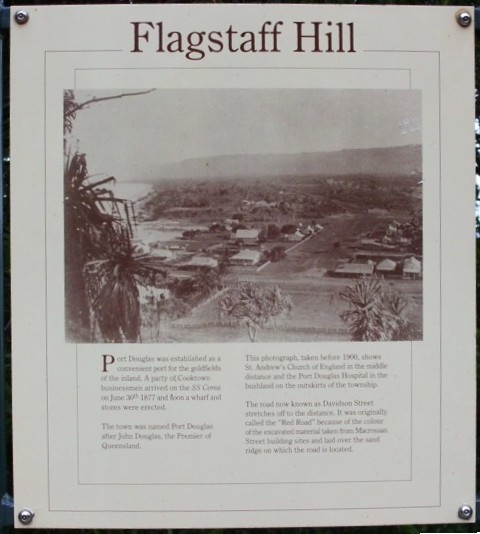 After a moderate climb to the top of Flagstaff Hill an extensive view is gained of the eastern end of Port Douglas, Fourmile Beach and the coastal range toward Black Mountain.